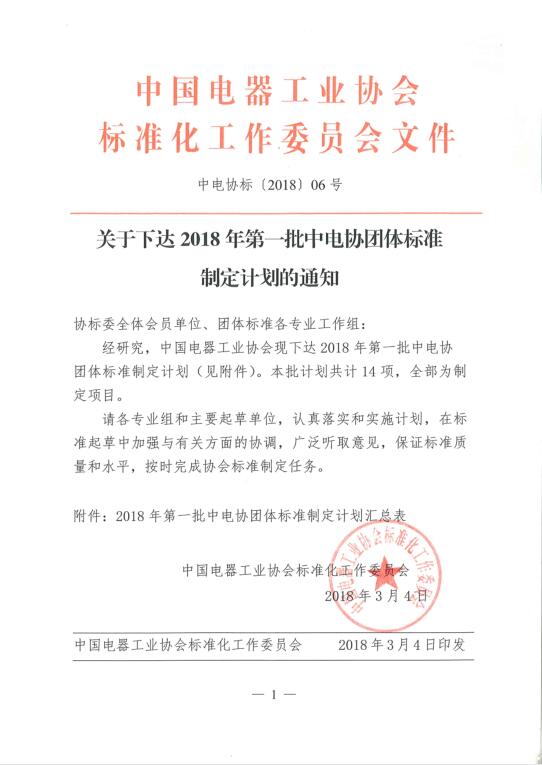 关于下达2018年第一批中电协国团体标准制定计划的通知