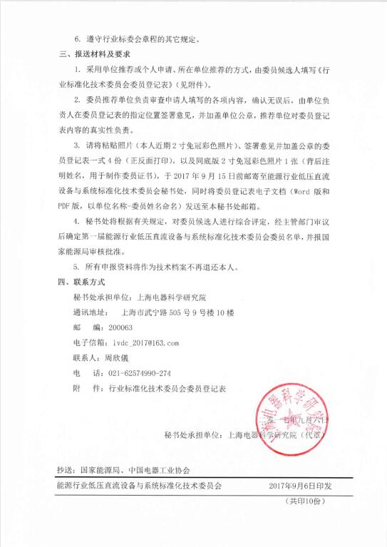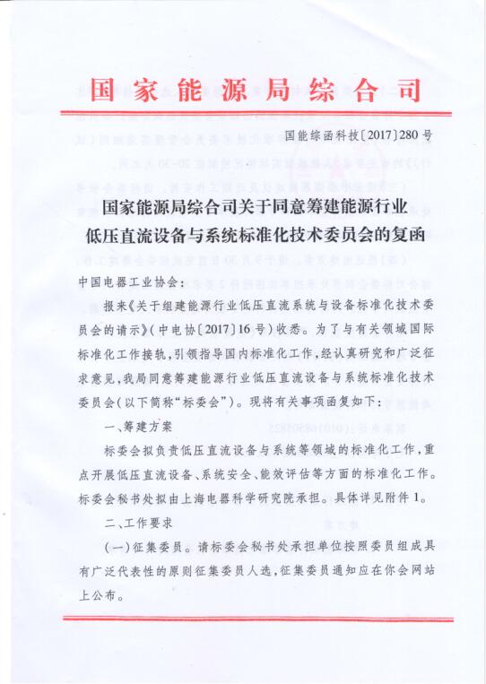 能源行业低压直流设备与系统标准化技术委员会(筹)征集委员的通知