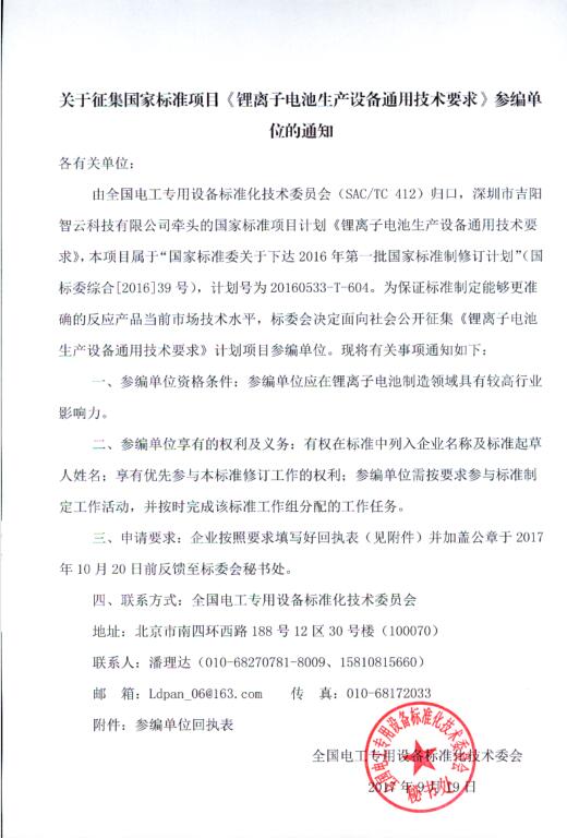 全国电工专用设备标准化技术委员会关于征集国家参编单位的通知