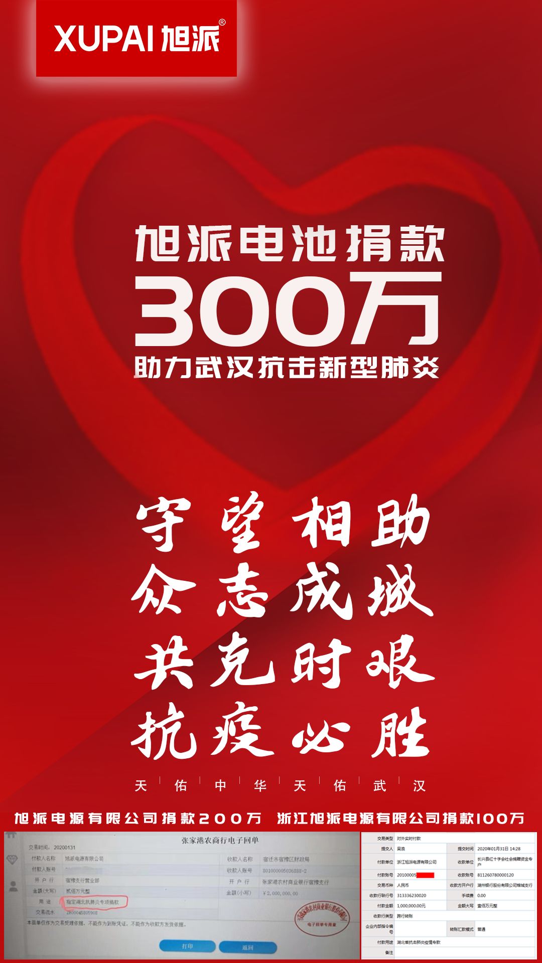 守望相助 共克时艰 旭派电池向武汉捐款300万元助力抗疫